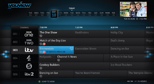 Now, even I would not want to lose the EPG entirely, at least as long as linear programming (broadcasting to a schedule) is with us. But it surprises me that YouView made it the centrepiece of their service. For a system that is supposed to take the audience on a journey from traditional schedules to the world of on-demand, it seems strange not to start further along that road. Their market research back in 2010 must have been saying that people weren’t ready to abandon the EPG yet. In fact, I know plenty of more elderly people who still haven’t even got to grips with the EPG, and just view the first five channels using the numbers on their remote. (I blame the engineers who delivered their set top boxes when the analogue broadcasts were switched off. So many didn’t take the time to explain the box properly.) I admit that not everyone wants to embrace the brave new world! YouView must be doing something right, because the rival systems, Freeview and Freesat, have both introduced scroll back EPGs too in order to compete – Freeview Play and Freetime respectively.