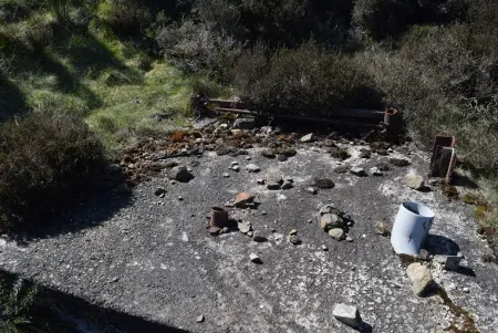 The remains of a stay anchor, probably from the 1951 mast that was dismantled after use ceased in 1985.
