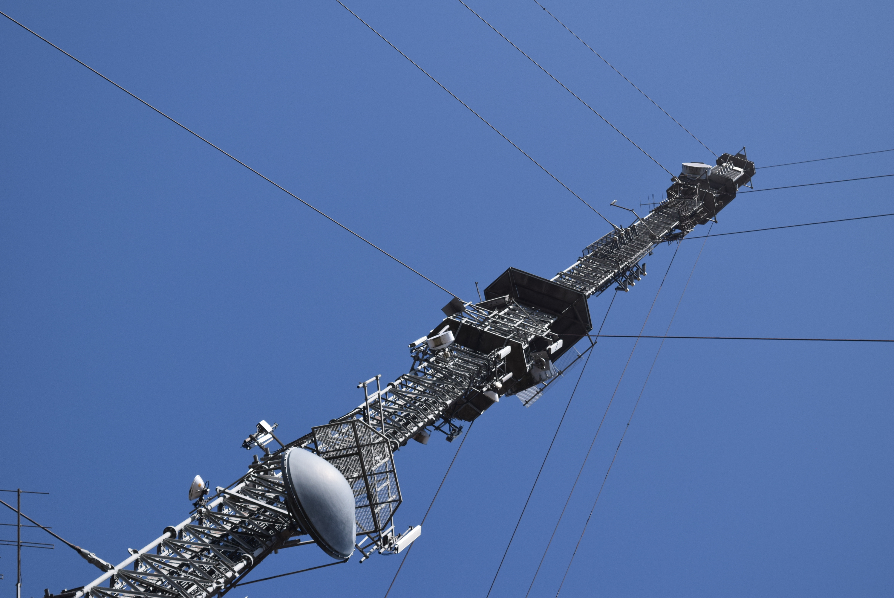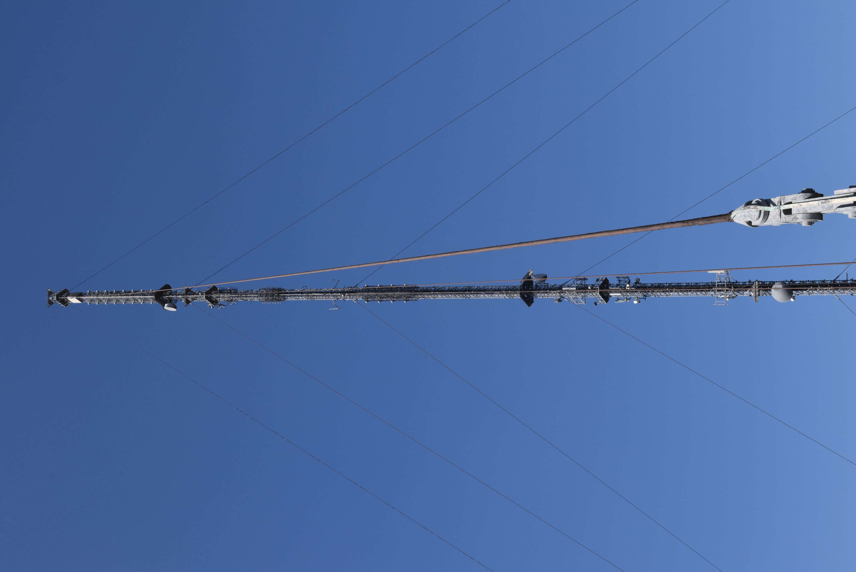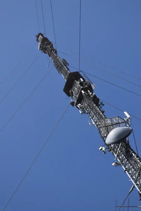 Note the ice shields over the antennas and dishes to protect from ice falling from above.